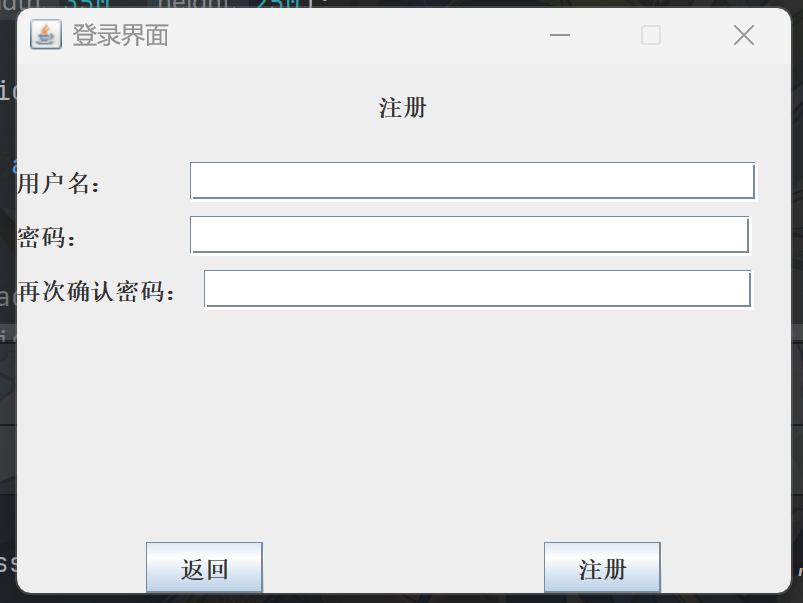 3. 点击返回按钮返回登录界面,并且自动关闭注册界面