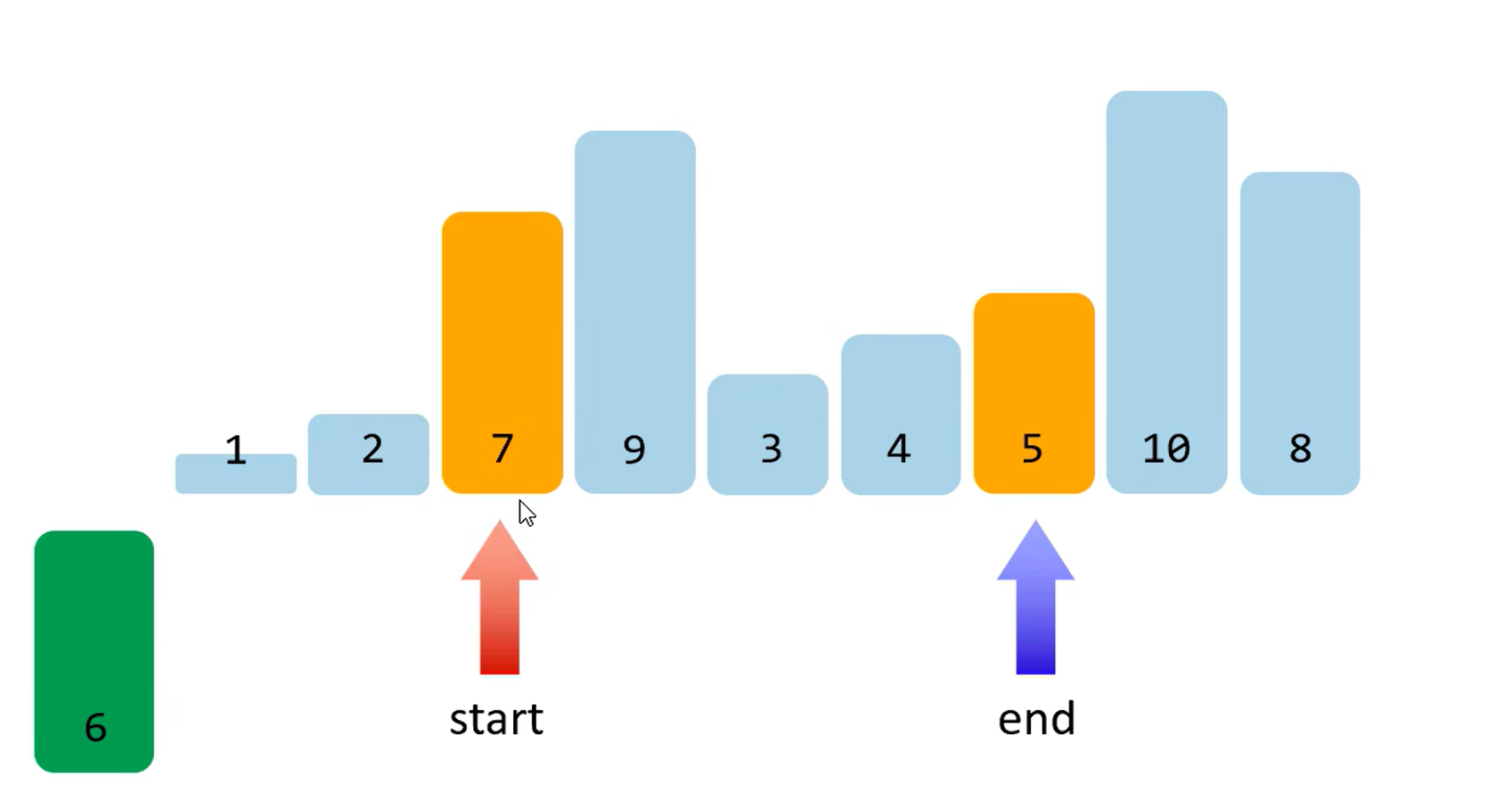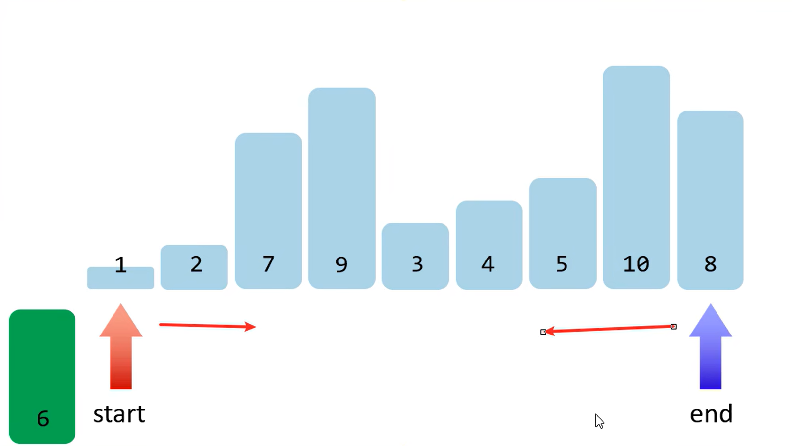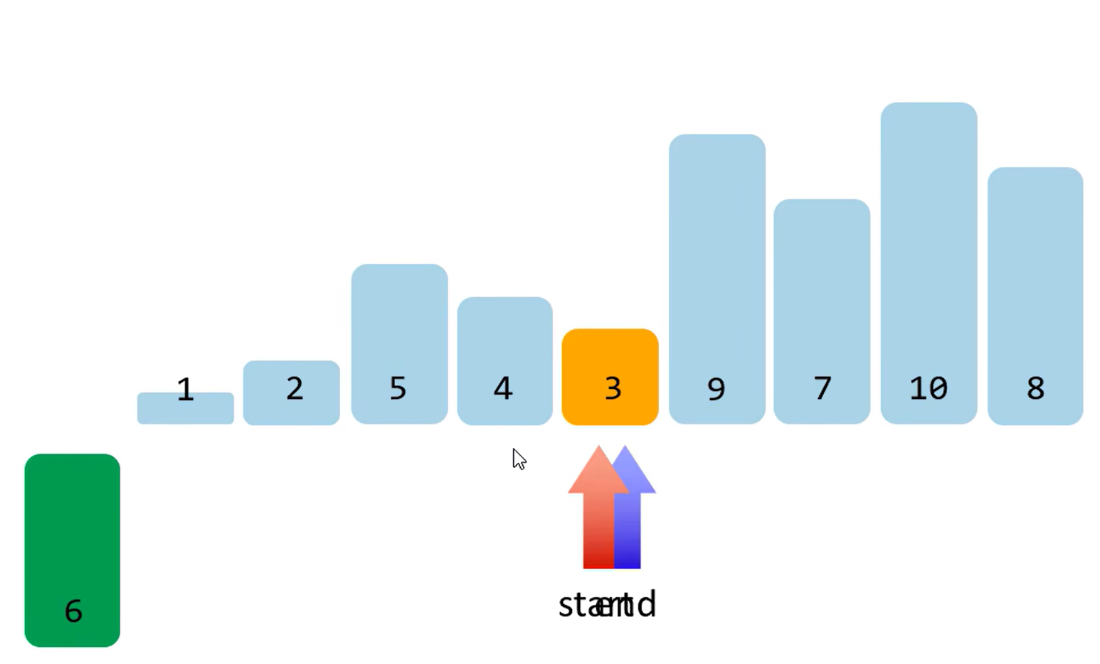 如图,6为基准数,start和end为定义的两个变量,他们会分别向中间遍历